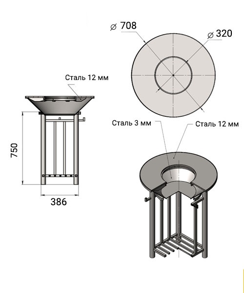 Fantastic Grill Везувий "Легенда" — это уникальный дизайн и невероятная универсальность. Конусообразная чаша для костра имеет широкий, плоский обод, который может быть использован как высокоэффективная жарочная поверхность. Температура жарочной панели регулируется расположением дров внутри конуса и меняется от 250 до 380 градусов. Эта особенность очага позволяет готовить одновременно несколько блюд при различных температурах. На дополнительно установленную решетку-гриль можно поставить казан, кастрюлю, сотейник, чайник, турку и многое другое.