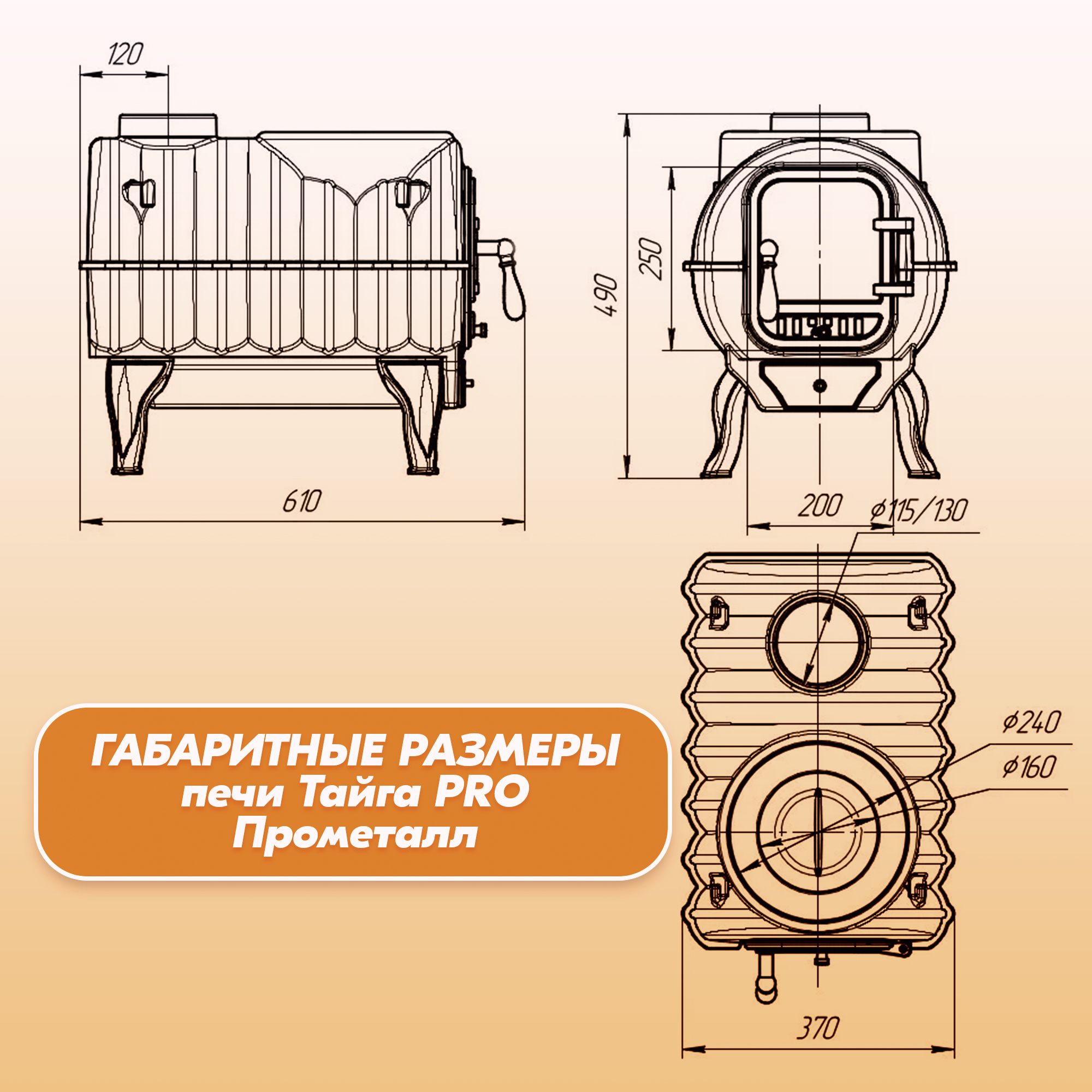 Печь отопительная Прометалл «Тайга» PRO - эффективная, функциональная, качественная и надежная чугунная печь с высоким КПД 80% по привлекательной цене.