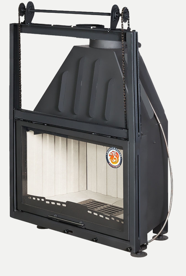 •Встроенная шиберная заслонка позволяет увеличивать/уменьшать сечение дымового канала и регулирует мощность топки.